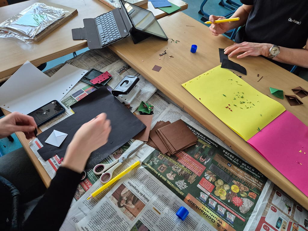 Die Karten werden wir nun gemeinsam mit den Kindern beenden und dann in der Aula aufhängen.