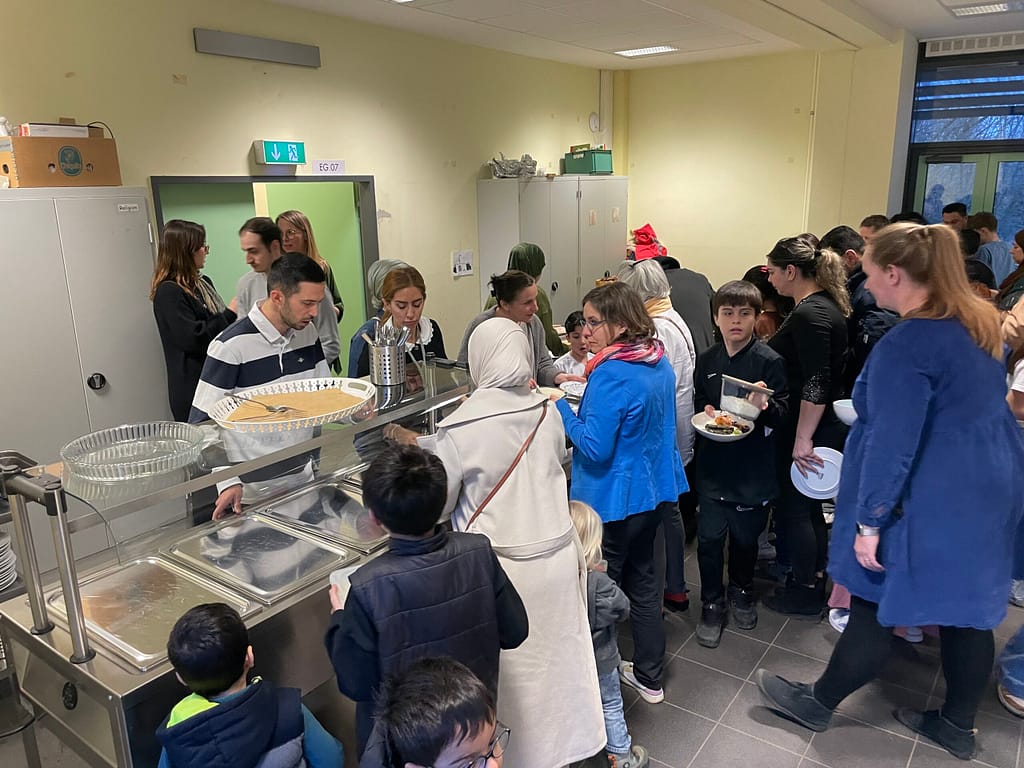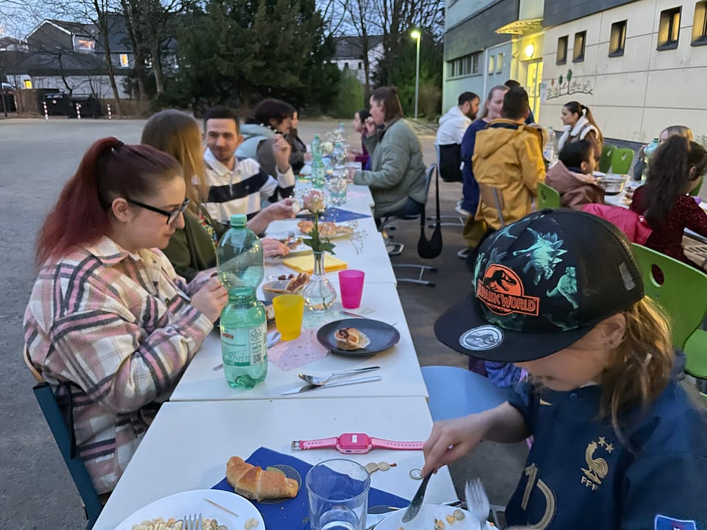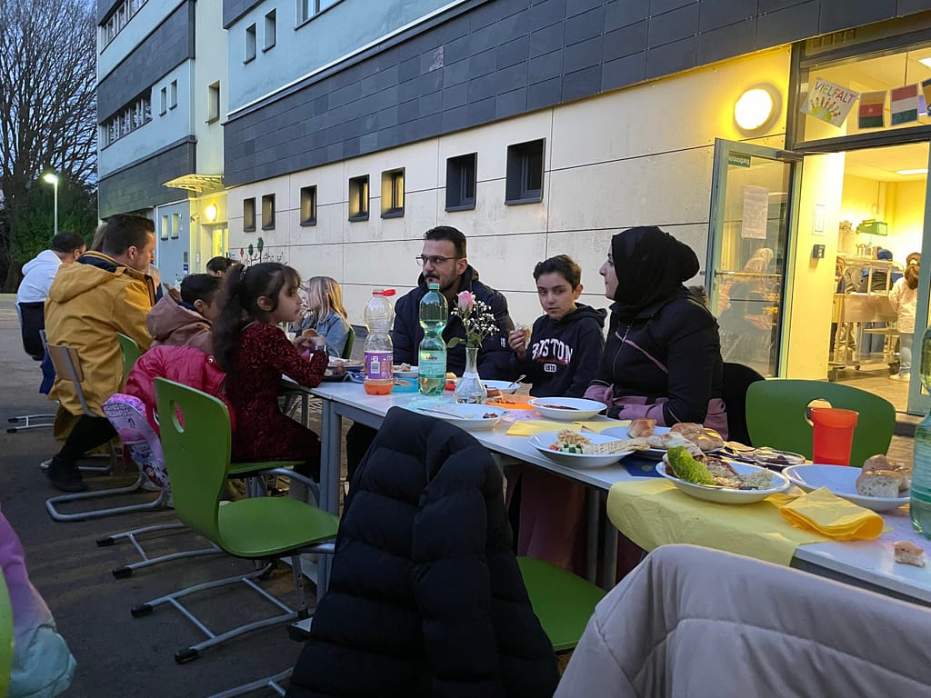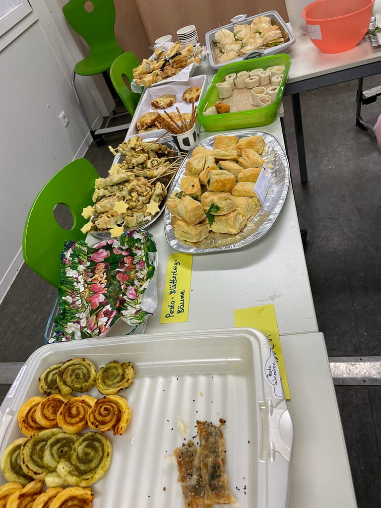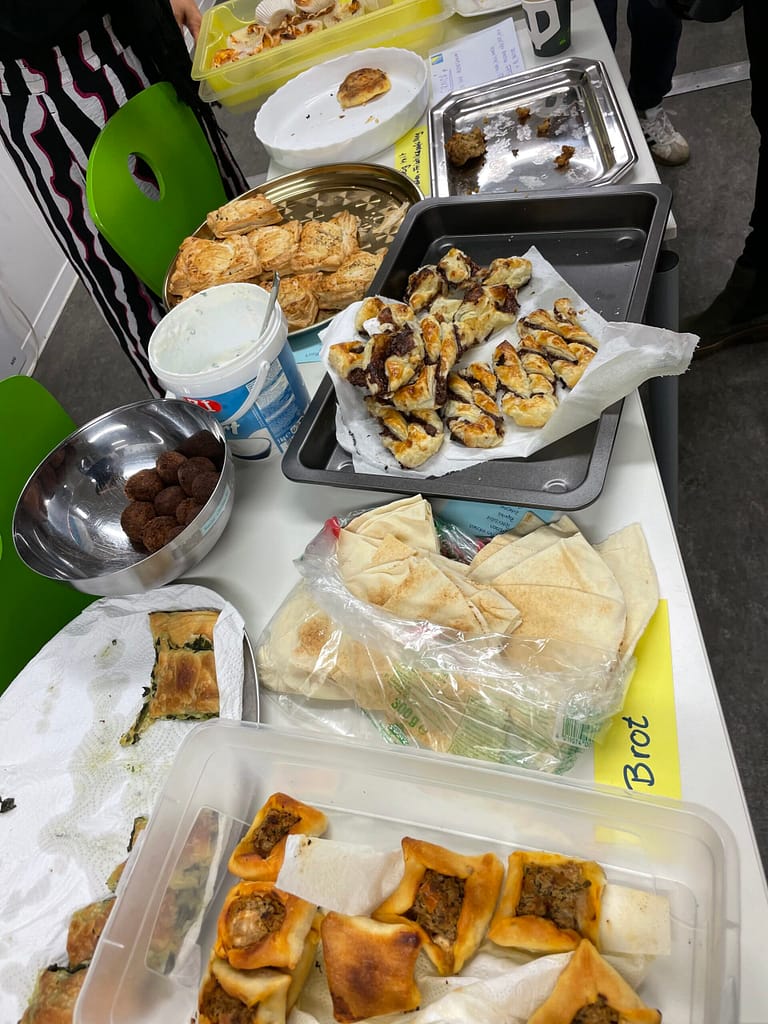 In der Aula gab es ein riesiges internationales Büffet. Viele Familien hatten Leckereien aus ihren Heimatländern mitgebracht – und so konnten alle probieren. Die Kinder sammelten mit Spendenboxen Geld für unser nächstes Zirkusprojekt. Dabei kamen über 1000 Euro zusammen.