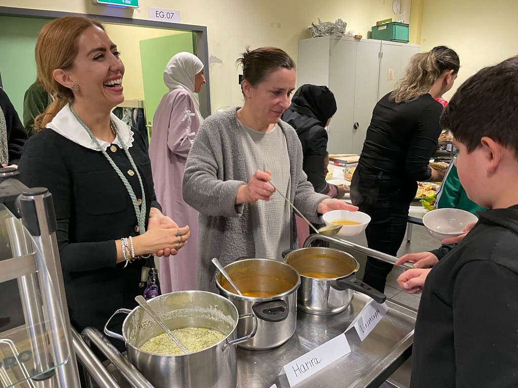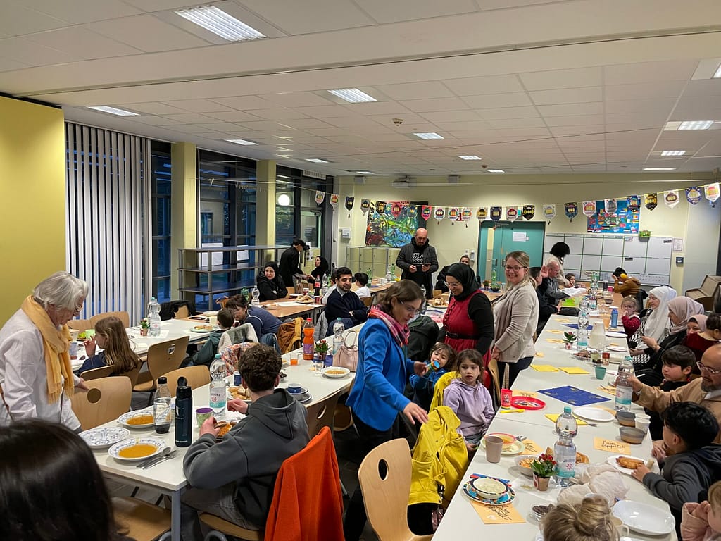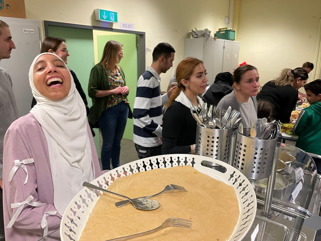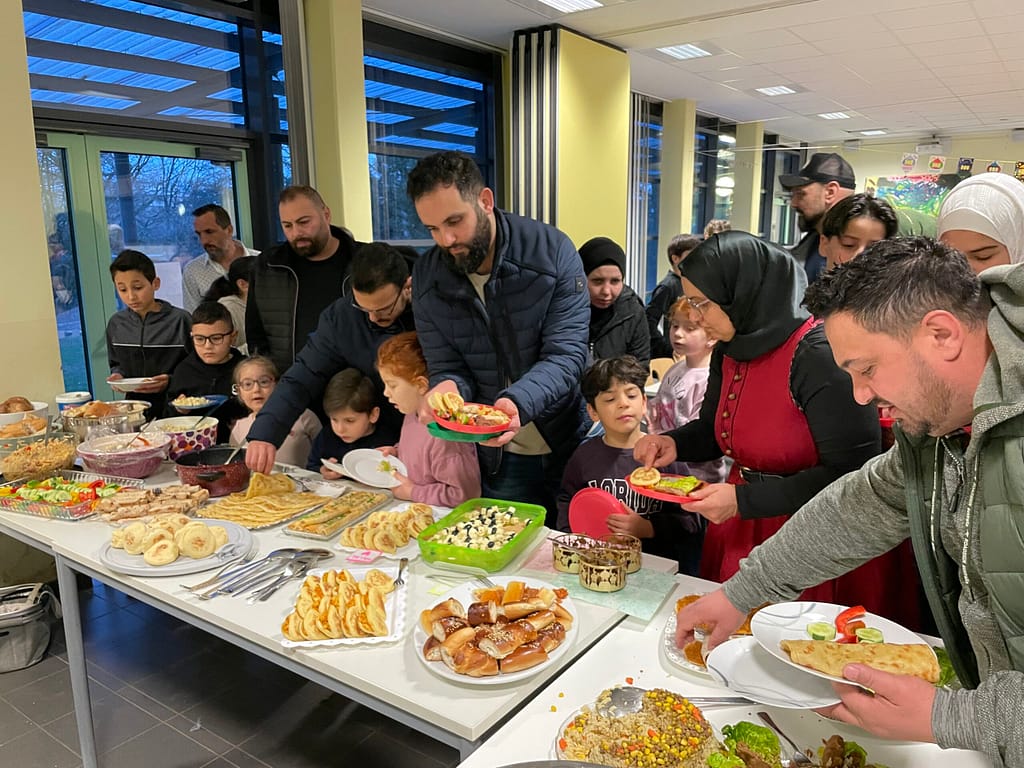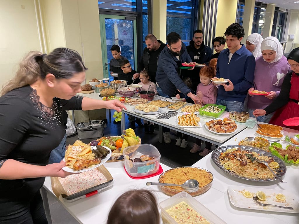 In der Aula gab es ein riesiges internationales Büffet. Viele Familien hatten Leckereien aus ihren Heimatländern mitgebracht – und so konnten alle probieren. Die Kinder sammelten mit Spendenboxen Geld für unser nächstes Zirkusprojekt. Dabei kamen über 1000 Euro zusammen.