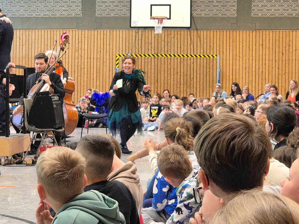 Ein besonderes musikalisches Erlebnis erwartete unsere Schülerinnen und Schüler am Mittwoch: das Sinfonieorchester Wuppertal war bei uns an der Schule. Die Musikerinnen und Musiker führten das Stück „Ein Entlein auf Reisen“ auf.